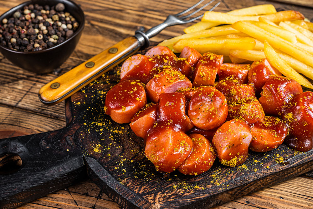 Currywurst, Trüffelpommes und veganes Kichererbsencurry